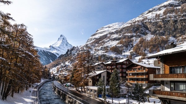 Zermatt gehört zu den schönsten Stationen des Glacier Express und ist eine autofreie Stadt. Öffentliche Verkehrsmittel stellen die einzige Möglichkeit dar, in die Stadt zu gelangen, was mit dem Zug ab den Flughäfen in der Region mehr als zwei Stunden dauern kann. Ist aber die Vorfreude auf den glitzernden Schnee zu groß für eine zweistündige Anreise, bringt ein Helikopter Gäste in nur 30 Minuten vom Flughafen Sion nach Zermatt.